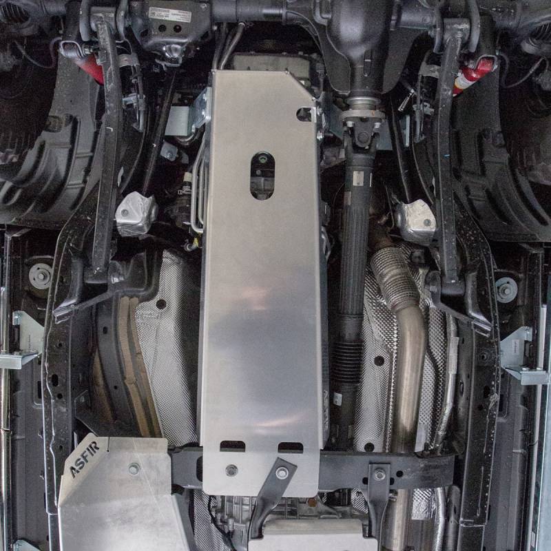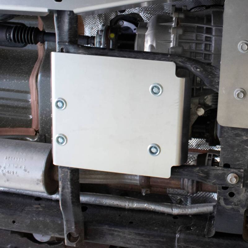 Protects essential underbody components: transfer case, engine, gearbox, and fuel tank.