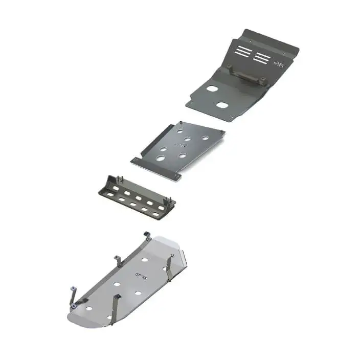 This 4-piece skid plate kit provides complete underbody protection for Toyota 4Runner V6 4x4 models without KDSS or diff-drop. Built from precision laser-cut 1/4" (6 mm) aluminum, it delivers strength, durability, and easy bolt-on installation for serious off-road use.