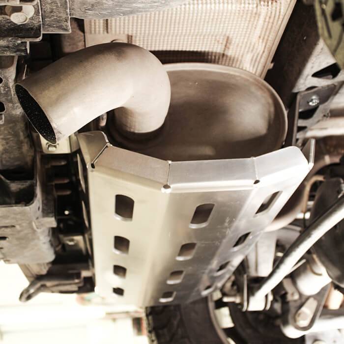 Protects the exhaust and rear arm from rocks and off-road debris.