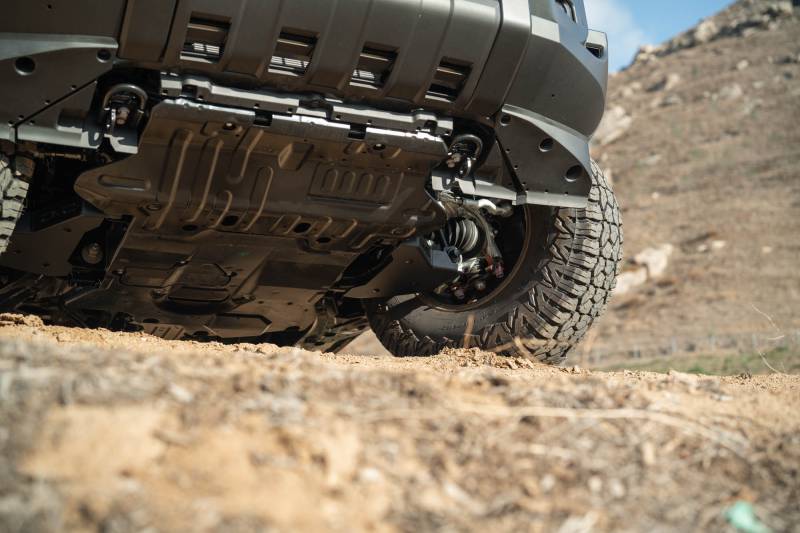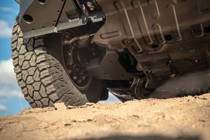 Our skid plates are designed to protect your rig’s control arms from obstacles. The skids feature a double thick front end and carriage bolt hardware. They are made from steel, and they are finished in a micro-texture black powder coat. The skid plates are fully bolt-on.
