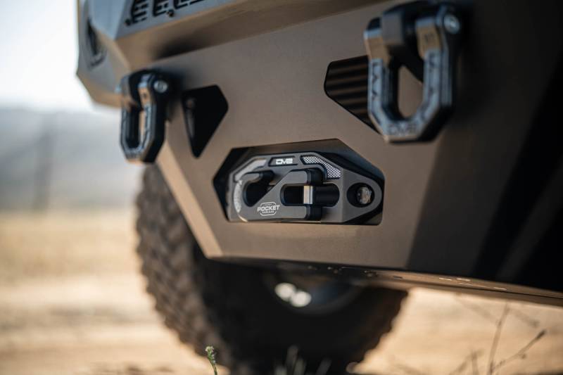 Our Front Bumper provides a winch mount and a pair of 1” thick D-ring mounts. It offers one 20” dual or single row light bar mount and two 3” pod light mounts. The bumper features an integrated front skid plate. Our bumper is made from steel, and is finished in a micro-texture black powder coat. The bumper is compatible with the factory adaptive cruise control and front camera.