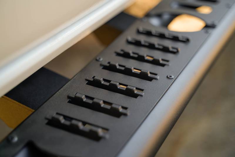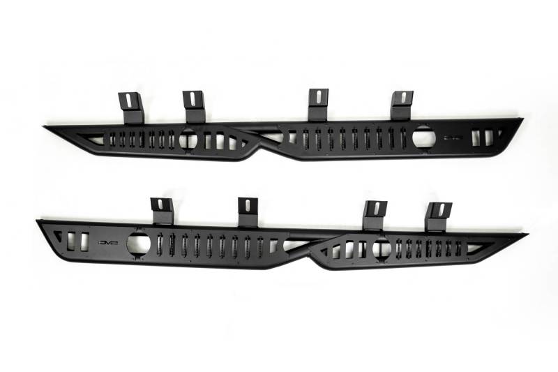 Our Side Steps mount directly to the body/pinch weld. Each step features a raised grip on the top plate. They retain the OEM ground clearance. The steps are finished in a micro-texture black powder coat, and they are made from steel. The install process is fully bolt-on.