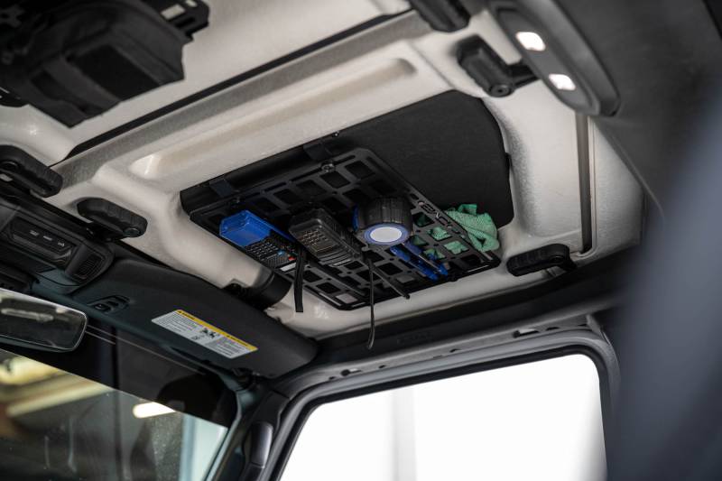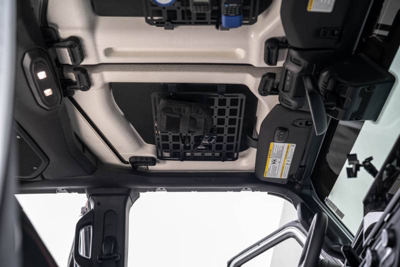 Our Jeep Wrangler JL Roof Mount for the 15” x 12” Universal Molle Panel (UNMP-04) creates a secure overhead mounting point using the factory hardtop freedom panel area. Made from lightweight, strong aluminum, it fits the 15" x 12" Universal MOLLE Panel (UNMP-04) and provides space for storage bags, radios, and small gear. The mount stays fixed once installed, while the panel can still be adjusted. Finished in a micro-texture black powder coat, sold per side, and requires drilling for installation. This is only compatible with the factory hard top, no soft tops or aftermarket tops.