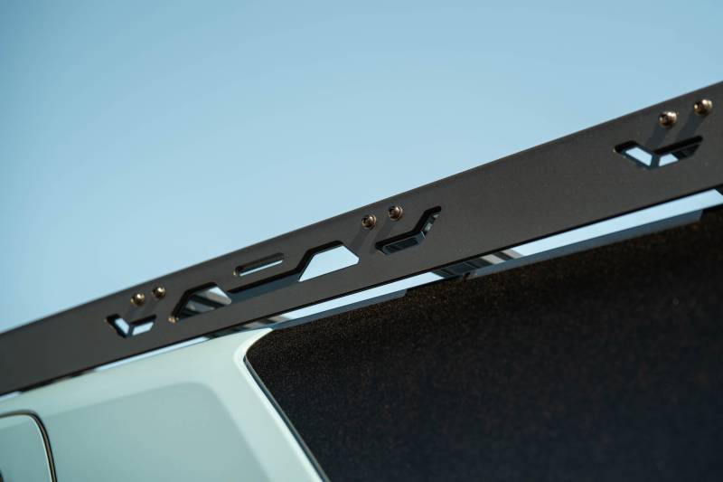 The 2025–2026 Toyota 4Runner Roof Rack Light Cutout Fairing fits the DV8 Roof Rack (RRTF3-02) only. It features a low-profile cutout design to reduce wind noise and allow flexible lighting options. Mount a 40” light bar, (2) 20” single-row bars, or up to (10) 3” pod lights. Finished in micro-texture black powder coat with a simple bolt-on installation.