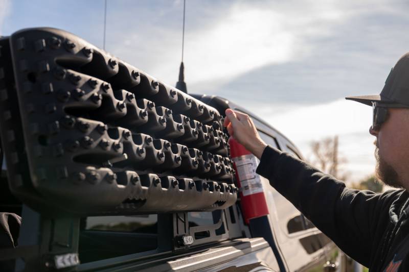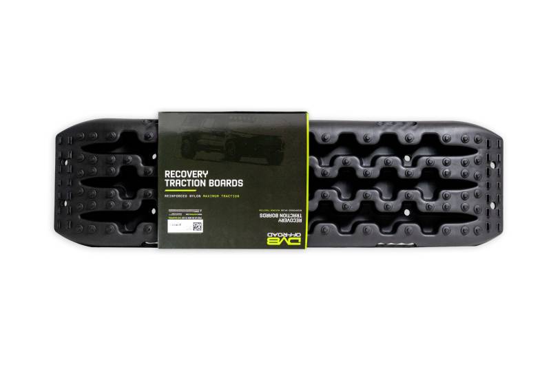 Durable traction boards designed to assist vehicle recovery in mud, sand, and snow. Tested to withstand up to 10 tons of compression. Stackable design for compact storage. Features molded carry handles, shovel functionality, and multiple mounting holes for flexible mounting options. Sold as a pair. Available in Black, Orange, and Tan.