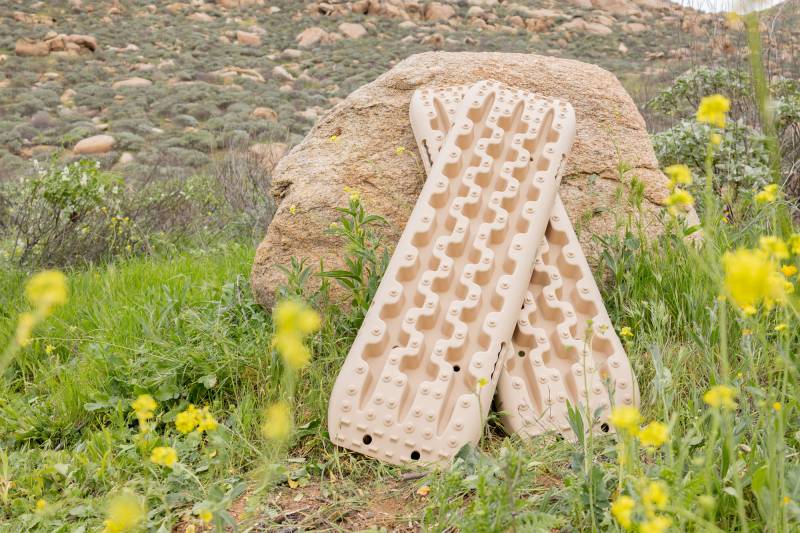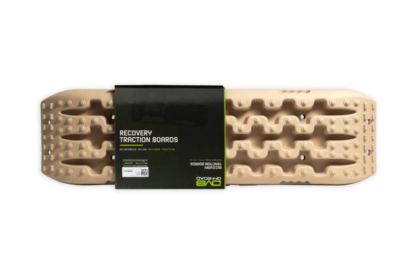 Durable traction boards designed to assist vehicle recovery in mud, sand, and snow. Tested to withstand up to 10 tons of compression. Stackable design for compact storage. Features molded carry handles, shovel functionality, and multiple mounting holes for flexible mounting options. Sold as a pair. Available in Black, Orange, and Tan.