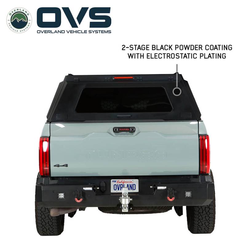 Textured Powder Coat Finish: The tough e-coat and two stage black powder coat finish not only adds a striking aesthetic but also provides extra protection against the elements, making your topper look great season after season.